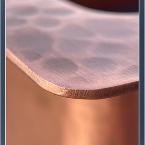 One example of this artistic expression is the randomized pattern of the hammer strike marks. Each impression represents a swing of the hammer and our artisans intentionally avoid neat "rows", with each strike building on unique formations. It's mesmerizing to watch.