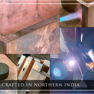 Our factory in Northern India is run by generational artisans who have been producing copper works for over 50 years. Each sink we make is a multi-day project involving several artisans, each a master in their craft. From hammering to the TIG-welding to the hand-patinaing, Fossil Blu means an authentic piece, made with great care.