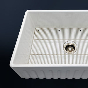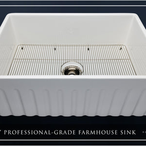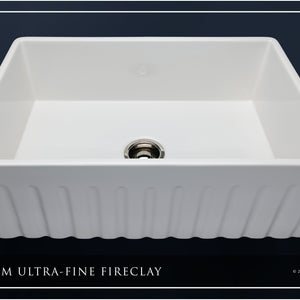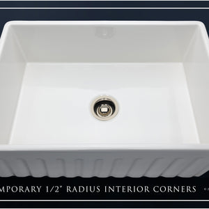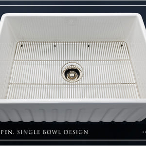 FSW1005PN LUXURY 30-INCH SOLID FIRECLAY FARMHOUSE SINK IN WHITE, POLISHED NICKEL ACCS, FLUTED FRONT