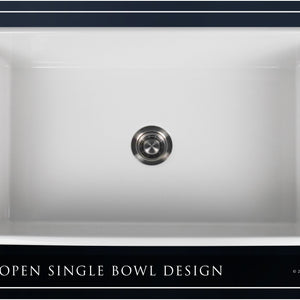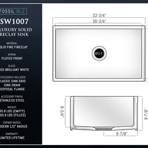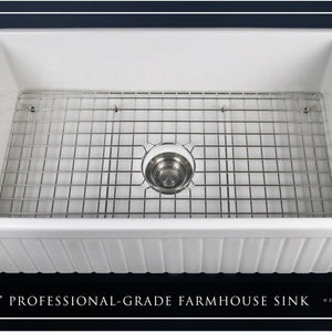 FSW1007 LUXURY 33-INCH SOLID FIRECLAY FARMHOUSE SINK IN WHITE, STAINLESS STEEL ACCS, FLUTED FRONT