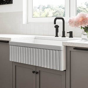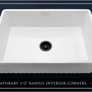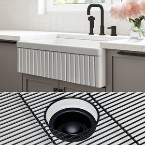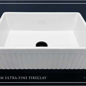 FSW1007MB LUXURY 33-INCH SOLID FIRECLAY FARMHOUSE SINK IN WHITE, MATTE BLACK ACCS, FLUTED FRONT