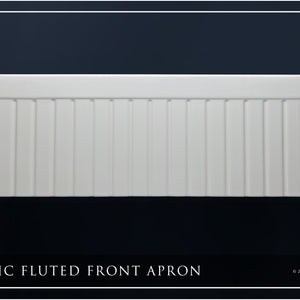 Turn-of-the-century farm sinks nearly always included a design on the front apron. The most common of which was a vertically grooved (fluted) imprint. Today, as the “Modern Farmhouse” trend has taken storm, the majority of new farmhouse sinks sold feature a simple, flat-front, modern apron. However, for those seeking something more, Fossil Blu’s 1.5” beaded shaker style of this fluted-front sink offers a blend of antique styling with a contemporary appeal. The design is crisp, yet features soft edges and a supple appearance to the front, characteristic of the natural fireclay material underneath. At 1-1/8” thickness, the apron presents as a bold, sophisticated sink and, much like shaker cabinet fronts, is a good fit in a variety of classic stylistic themes. The left and right sides of the sink are fully finished, allowing for any install depth. We generally recommend 1-1/2” to 2” of the sink to be exposed on the left and right sides.