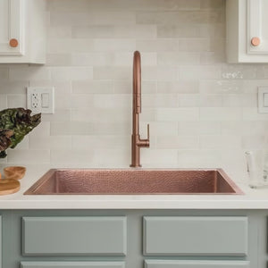 Every Fossil Blu Copper Farmhouse Sink is made with extra-thick, 99.1% pure copper (zinc added for stength)
