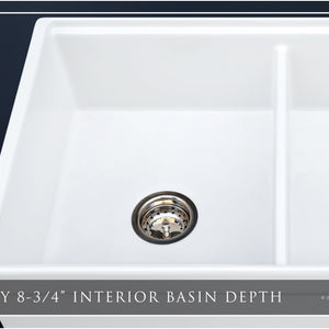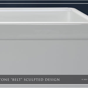 This sink features Fossil Blu’s legendary silica-based glaze, which is robotically applied, allowing for up to twice the glaze thickness compared to hand-sprayed glazing techniques. Fired (kilned) at over 2200-degrees Fahrenheit, the glaze fuses with the fireclay substrate to create a permanent enamel. This high-gloss enamel has a very high hardness rating, which means it is non-porous and nearly indestructible. Standard household cleaners and mild abrasives (including bleach and Bar-Keeper’s Friend) are safe to use in moderation. Our white finish is similar to Appliance White (sometimes called Smoke White). RGB value averages are as follows: R: 235, G: 235, B: 237. The consistent RGB values of our finish means the white color has neither a warm nor cool tint. The high RGB values means the white is near perfect white (RGB each at 255).