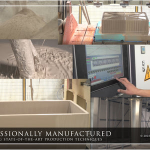 Cheap and inferior "fireclay" sinks are usually just hollow-core ceramic products. When you buy Fossil Blu, you're buying authenticity and long-term durability. Our SOLID dual-layer fine and ultra-fine base material makes for an incredibly resilient sink.